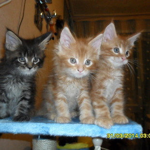 Очень крупные котята породы мейн-кун. 2 месяца. к лотку приучены, привиты, с хорошими документами. Родители чемпионы. очень ждут своих любимых и любящих мам и пап.