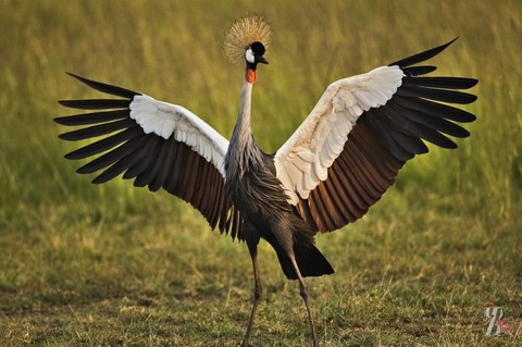 Эта красивая, изящная птица достигает в высоту 91-104 см, а размах ее крыльев составляет 183-198 см. Весит венценосный журавль 3.9-5.2 кг.