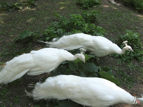 Кстати, скрещивание павлинов селекционеры не одобряют. При скрещивании белых павлинов с обычными получаются пегие экземпляры с неравномерной окраской.