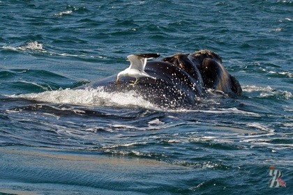 Исследовательница Карина Марон и ее коллеги изучили аэрофотоснимки китов и их детенышей, снятые в 1974-2011 годах, а также фотографии выброшенных на берег в 2003-2011 годах животных. Сначала ран, нанесенных клювами чаек, почти не было. К 1980-м годам число пострадавших особей вырастает до 35%, а к 2000-му году число пострадавших составило уже 99%...
