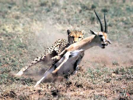 Кроме того, гепард не только быстро разгоняется, но, как показали наблюдения, еще и очень эффективно тормозит: опорно-двигательный аппарат хищника при этом выдерживает нагрузки втрое больше, чем мускулатура, скелет и связки лучших лошадей, специально тренированных для игры в поло.