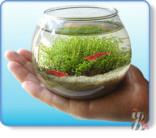 Поэтому, несмотря на то, что мини-аквариум на первый взгляд кажется оригинальным уголком живой природы на рабочем столе, проблем с ним куда больше, чем со стандартным аквариумом, и времени по уходу за ним уж точно понадобится больше. И если вы не будете уделять правильному уходу за рыбой достаточное количество времени, вы просто ее уморите. Если же мы уже имеем такой мини-аквариум - ухаживаем за ним наилучшим образом!