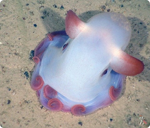 Осьминог Думбо или Гримпотевтис - Grimpoteuthis - самый глубоководный из моллюсков. Обитает на глубине от 100 до 5000 метров, хотя некоторые виды были обнаружены на глубине 7000 метров.