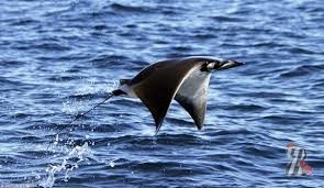 Это поистине один из самых загадочных морских животных на Земле. Тело животного напоминает ромб из-за похожих на крылья огромных грудных плавников. Широкие плавники мобул, не только помогают им плавно передвигаться в воде, но и служат крыльями во время полета по воздуху, когда они выпрыгивают из воды. Мобула может, как птица взмахивая плавниками, выпрыгивать из воды на высоту до двух метров. А потом, «пролетев» какое-то время в воздухе, животное со всего маха ударяется «животом» о воду…