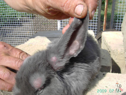 Заразные болезникроликов вызываются невидимыми простым глазом возбудителями накожными или обитающими во внутренних органах паразитами. Наиболее опасное заболевание кроликов – миксоматоз. Эта остро протекающая болезнь кроликов заканчивается в большинстве случаев гибелью животного. Протекает миксоматоз кроликов в двух формах: узелковой форме (на теле животного появляются опухоли размером с горошину или чуть крупнее) и отечной форме (опухоли сливаются в сплошной отек).